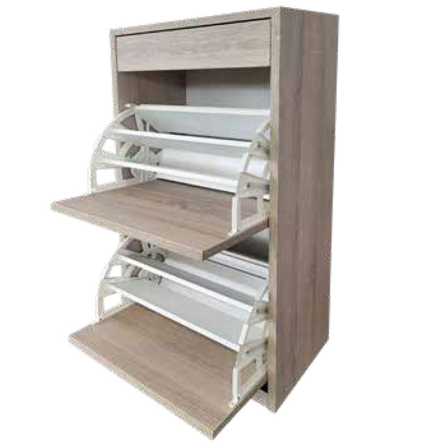 Zapatero doble abatible con un cajón de 13 cm sin tirador. Este diseño no está disponible en postformado (box).